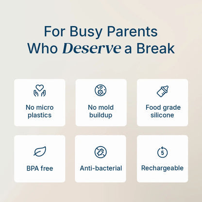 Who has time to stand at the sink forever? The 360° PowerBrush spins through dried milk and bottle gunk fast — even in the corners you can never reach. Less scrubbing, more winning (and maybe a hot coffee for once).